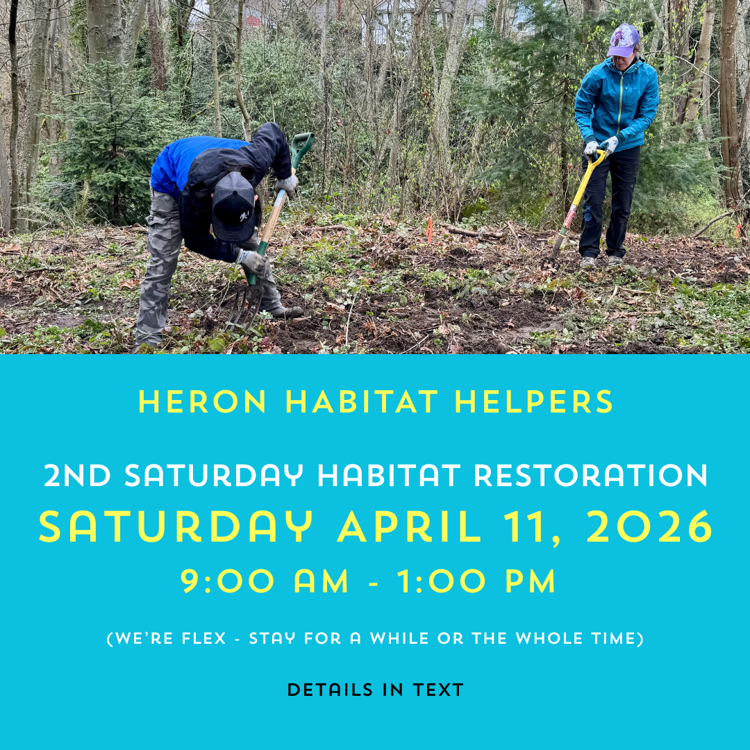 Designated as Seattle Parks’ first official Wildlife Sanctuary in 2010, Kiwanis Ravine is adjacent to Seattle’s largest Great Blue Heron colony—just a short walk from our work site! For those interested, we’d love to lead a short tour after the event.