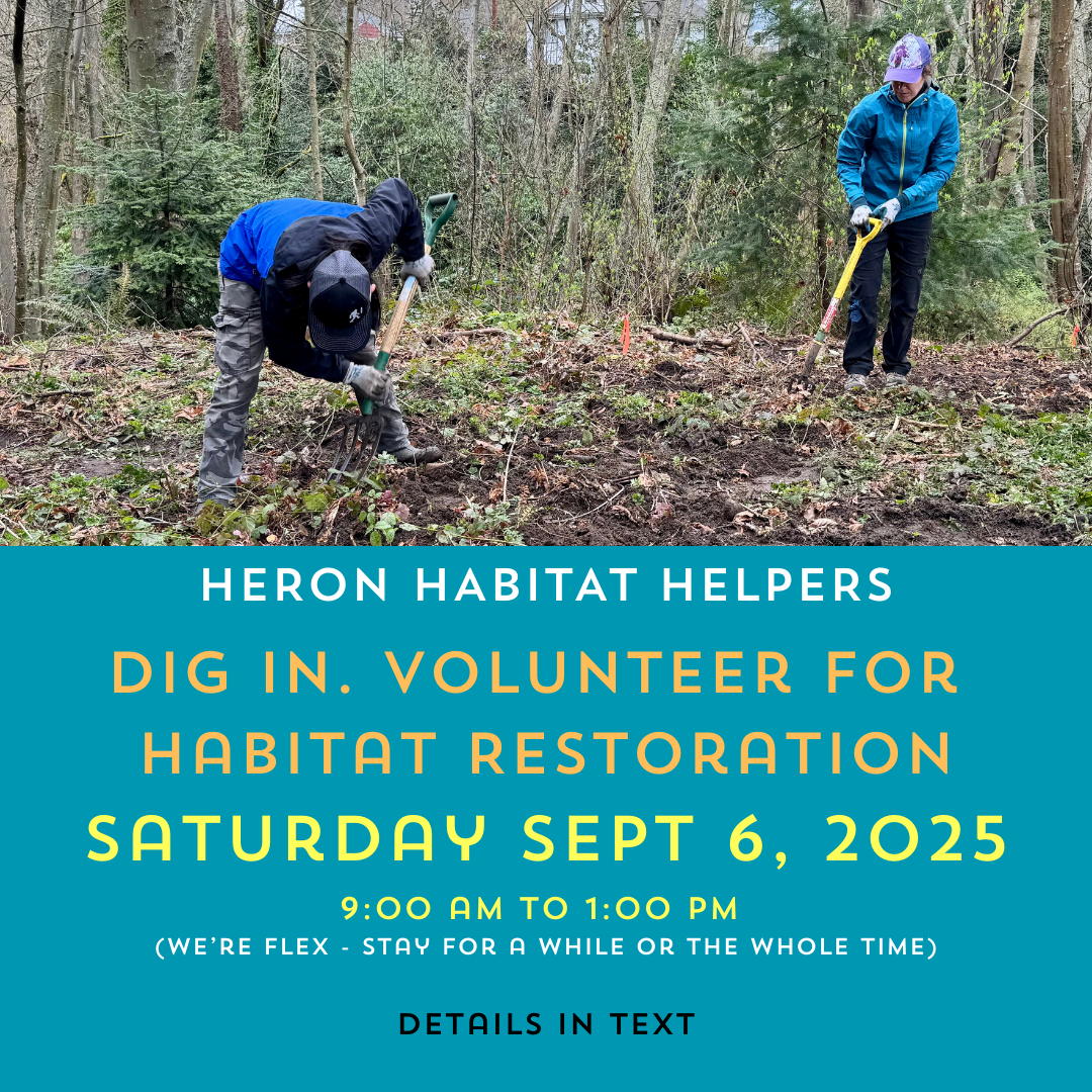 Drop by the colony to learn about what Heron Habitat Helpers (HHH) does to support Seattle’s largest colony of nesting great blue herons and how you can get involved.